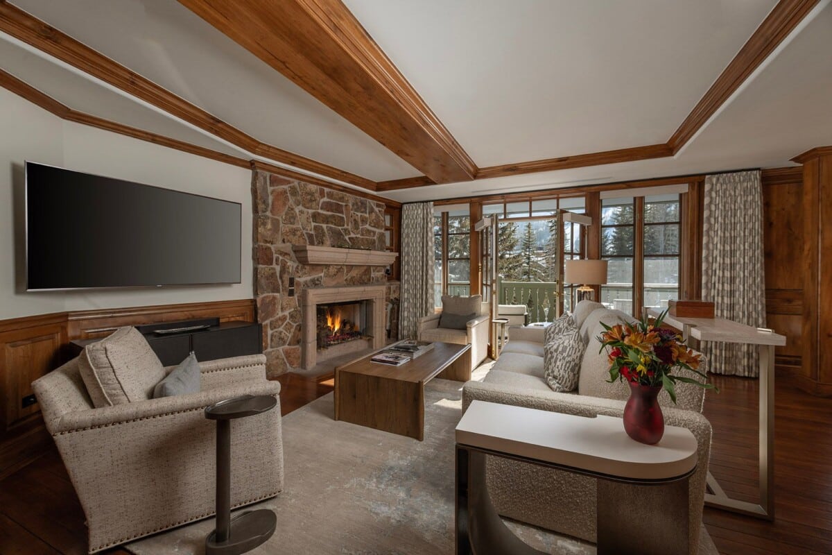 Enjoy comfort with room to spare in Residence 204. Beautiful butternut paneling conceals a double Murphy bed in the Great Room allowing for extra sleeping space. The entry bath includes a shower as well as a washer and dryer. A galley-style kitchen opens to a dining area with a table that seats four. And the primary bedroom offers a tranquil retreat featuring a luxurious bathroom complete with a soaker tub, separate shower, and dual vanities.  Amazing views of Beaver Creek Mountain are enjoyed from the entire residence and spacious balcony.